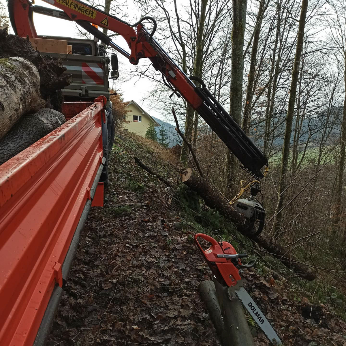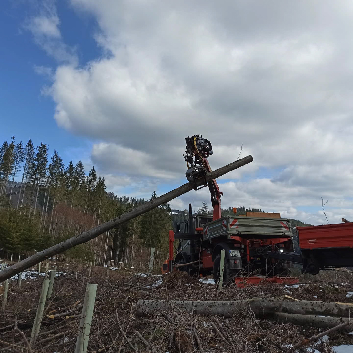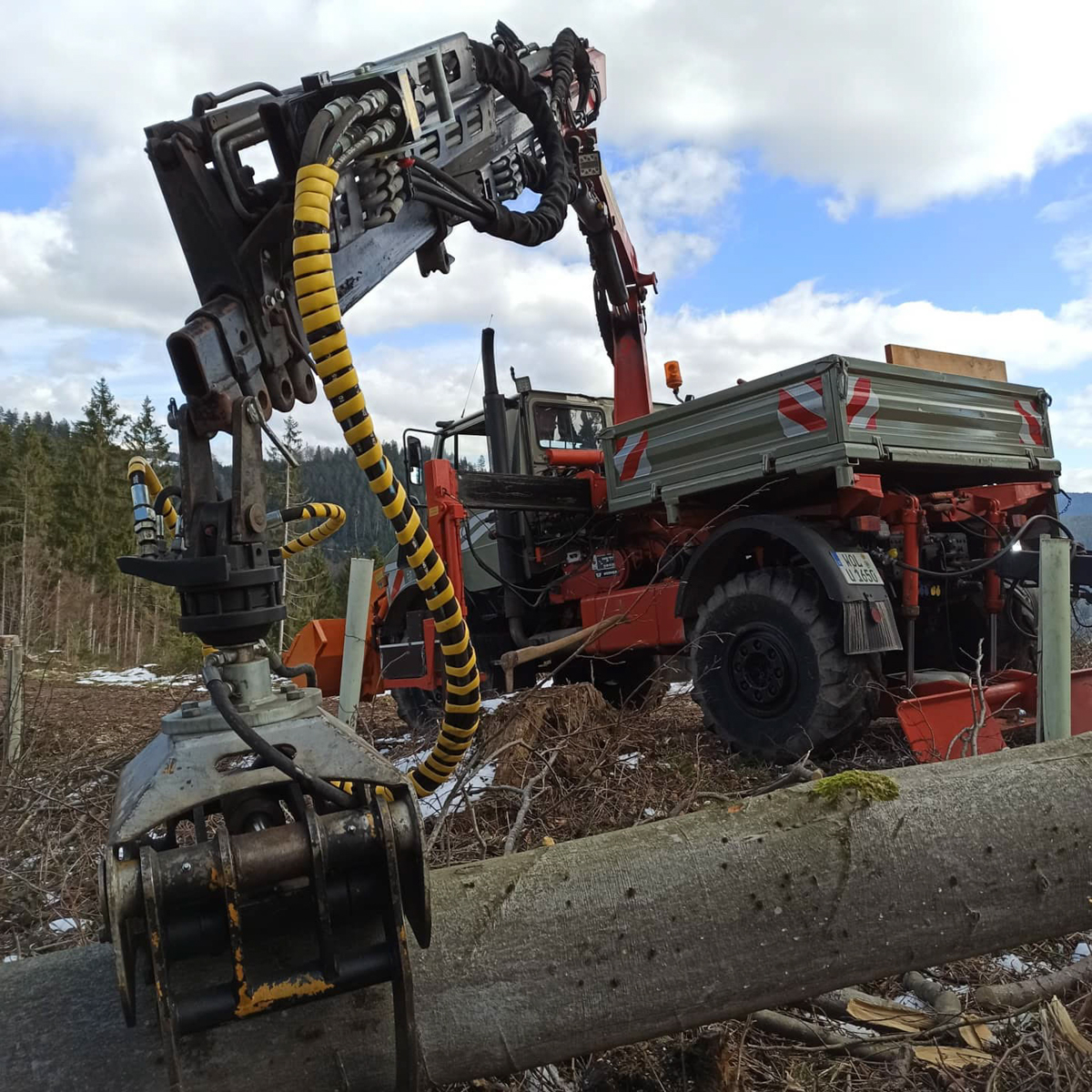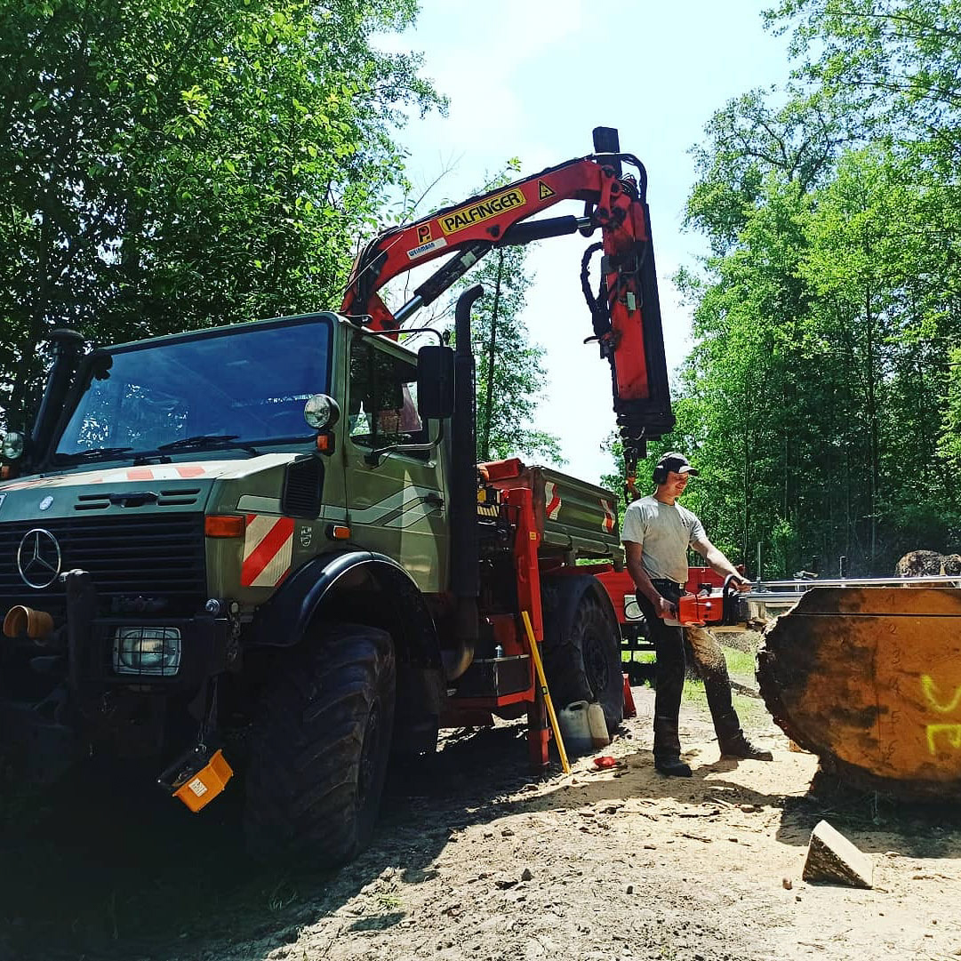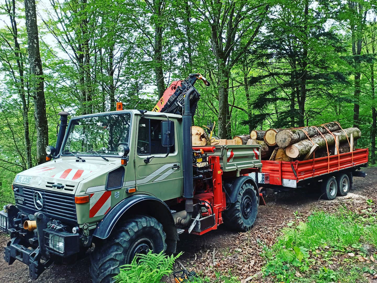 Zimmerei, Blockhausbau, Transport und Kranarbeiten mit Unimog U1650