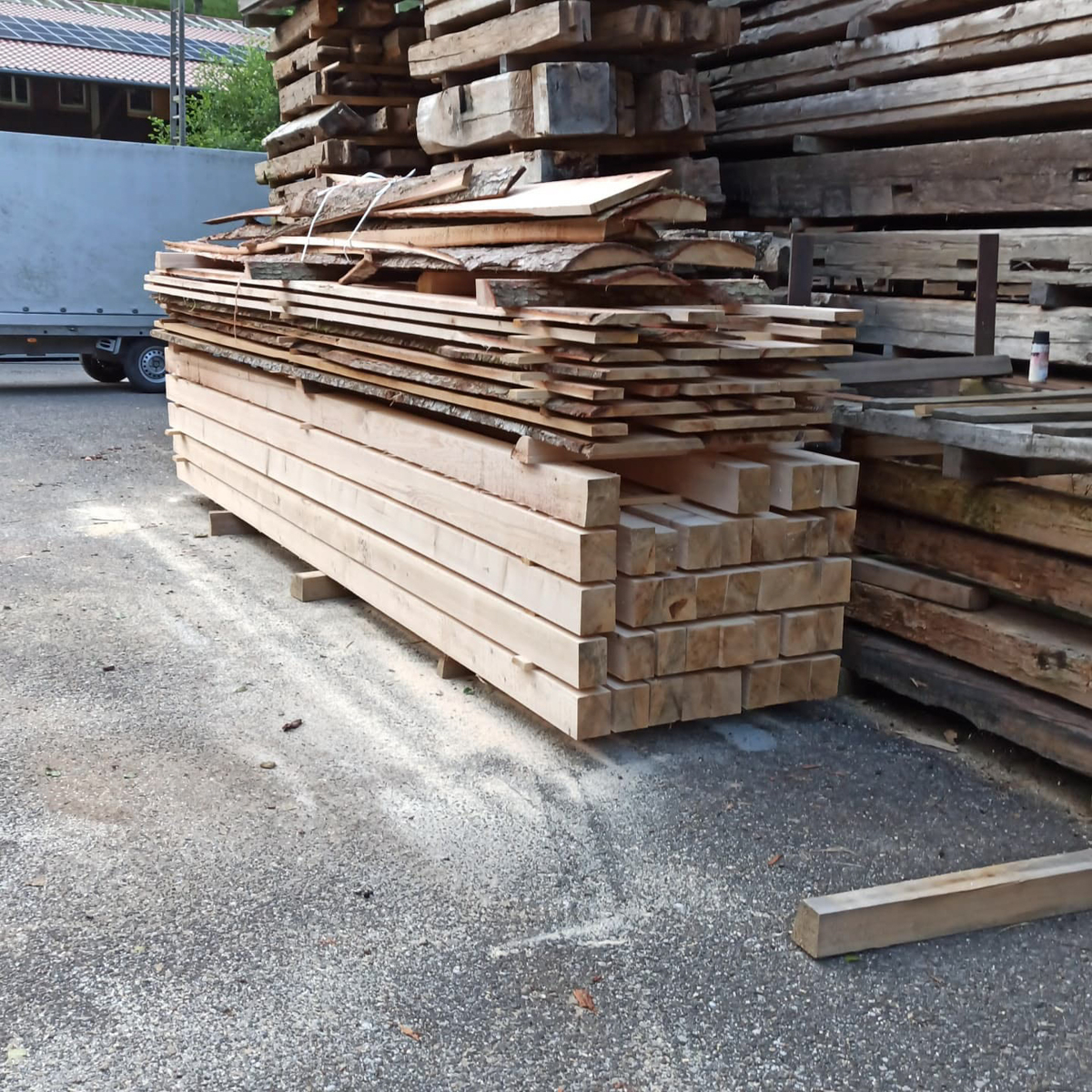 • Sägefähig, Holzfehler toleriert, überlagerte Hölzer